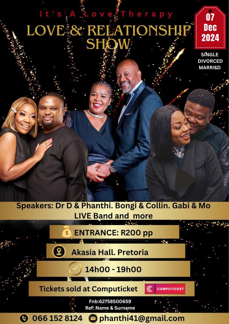 The Love & Relationship Show, held on 07 December 2024 at Akasia Hall in Pretoria, brought together couples and individuals for an afternoon of connection, growth, and inspiration. Whether single, divorced, or married, attendees were welcomed into a warm environment designed to strengthen relationships and spark meaningful conversations.